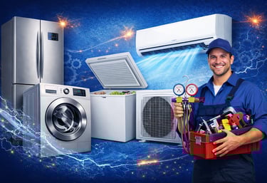 نقدم صيانة شاملة للثلاجات، الغسالات، التكييفات، والديب فريزر بأعلى جودة.